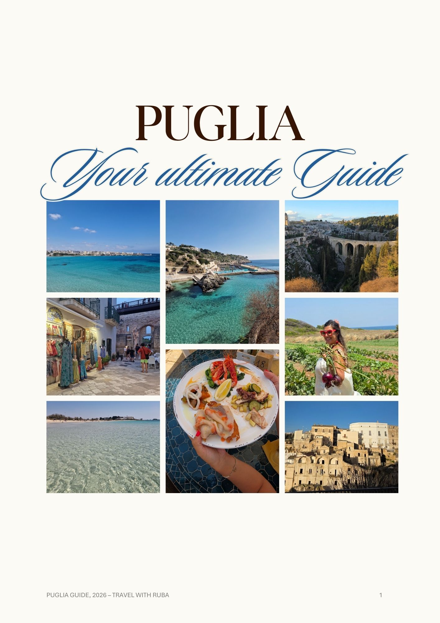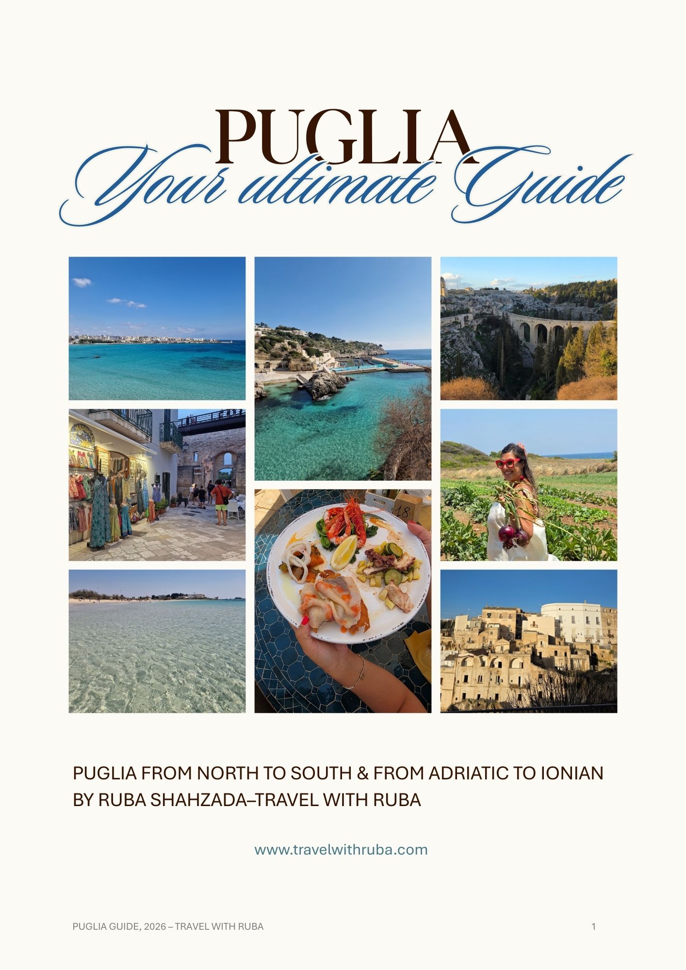 Created by travel blogger Ruba, myself, who lives in Puglia for some years now, this digital guide shares the exact places locals love but most tourists miss, but this doesn’t mean I am excluding hot and must visit places where other tourists also visit when travelling to Puglia!